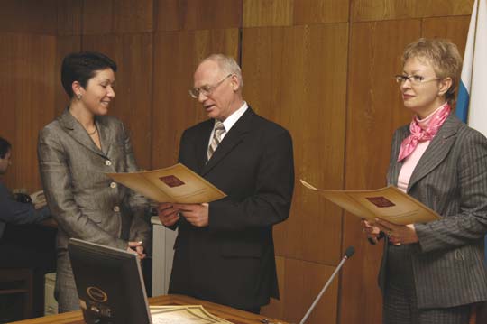 Поздравив учителей страны с наступающим праздником Днем Учителя, Григорий Балыхин рассказал о главных направлениях работы Форума «Образовательная среда – 2004»: развитие материально-технической базы образовательных учреждений, их информационной среды и безопасность школ, вузов, техникумов. По итогам выставки, сказал он, четыре её участника, фирмы-производители товаров для российского образования, уже получили так называемые «разрешительные знаки» агентства, а точнее, Федерального экспертного совета, задачами которого является проверка качества учебной техники и технологий обучения. «Такой знак дает предприятиям преимущество участия в федеральных и отраслевых программах, - сообщил руководитель агентства. – Я говорю об этом потому, что сейчас появилось очень много фирм, предлагающих образовательным учреждениям свою продукцию, но она часто бывает весьма низкого качества, выпускается с нарушениями СанПинов. Разрешительный знак нашего ФЭС гарантирует, что эта продукция пройдет проверку самых требовательных специалистов».