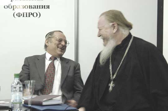Выступающие говорили о необходимости введения в федеральный компонент стандарта общего образования некоторых основных понятий православной культуры, о которой в стандарте, по словам Леонида Гребнева, упоминается всего четыре раза, и даются весьма неточные понятия. Например, вместо «православия» говорится об «ортодоксальной церкви», хотя в строго научном смысле эти слова синонимами не являются. «Стандарт – не догмат, который создавался на века, - говорил Леонид Гребнев, - и у нас есть возможность повлиять на ситуацию и внести в этот документ необходимые коррективы». На взгляд Ольги Васильевой, пора создавать школьный учебник по истории и культуре традиционных религий России: православию, исламу, буддизму, иудаизму, которые исповедует большинство населения нашей страны. Алла Бородина, автор нескольких учебных пособий по основам православной культуры, которые успешно прошли апробацию во многих регионах России, высказала точку зрения, что этот предмет может преподаваться факультативно или быть предметом по выбору, но качественное усвоение знаний дает только систематическое изучение данной учебной дисциплины, поэтому желательно уделять ей хотя бы по одному часу в неделю. Всеволод Троицкий говорил в своем выступлении о том, что история и культура традиционных религий России должны стать обязательным школьным предметом, потому что именно религиозная, духовная культура и позволила некогда народам России создавать великие литературные произведения, музыку, живописные полотна. Зиновий Коган высказал мнение, что изучение различных религий в многонациональной стране не может привести к межнациональной и межрелигиозной вражде, которую уже не раз предрекали нашему обществу журналисты и политики, потому что «главной религией граждан России всегда являлась сама Россия, ее дети, ее будущее». О. Дмитрий Смирнов сказал о том, что вопрос, преподавать или нет в школах религиозную культуру, на самом деле звучит так: «А кого, какого человека мы хотим получить в результате модернизации российского образования? Денег на реформу затрачено много, но получим ли мы в ее результате гармонично развитую, творческую и духовно богатую личность? И почему традиционные верования наших предков менее важно знать детям, чем ботанику и химию?» Выступающие сошлись на том, что преподавание истории религиозной мысли России можно одновременно назвать и возвращением к российской традиции, и образовательной инновацией, которая, в конечном итоге, должна повысить качество гуманитарных знаний наших школьников. Ирина Репьева, «Большая перемена».
