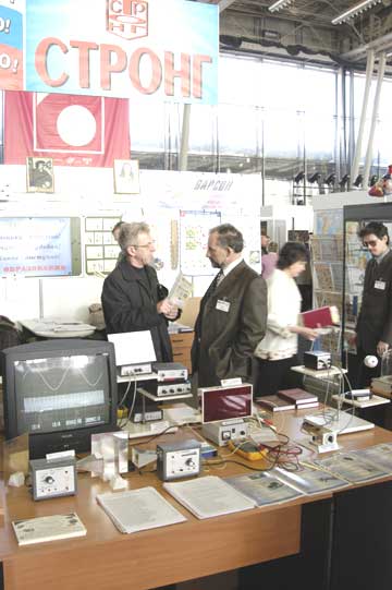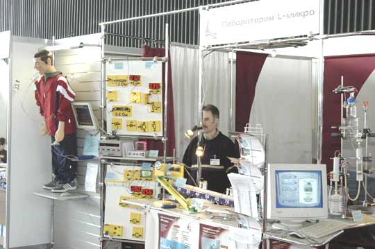Конечно, для средней школы тренажеры попроще. В этом разделе выставки представлены лаборатории для кабинетов физики, химии, биологии. Многие фирмы выпускают целые комплекты оборудования по разным предметам, которые упаковываются в удобные пластиковые ящики и легко помещаются в стандартный школьный шкаф.