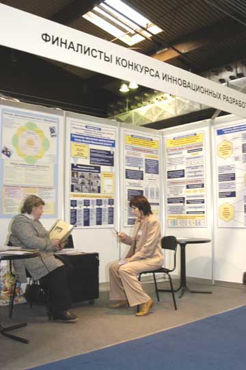 Например, в Иркутской области реализуется эксперимент по разновозрастному обучению. Оказывается, дети разного возраста, объединенные в одной группе, получают огромное удовольствие от общения. Они постоянно учат друг друга чему-то новому, заодно облегчая задачу воспитателей и учителей. А в Хабаровске был реализован эксперимент по реабилитации наркоманов и профилактике безнадзорности. В регионе даже появились новые специальности: педагог-реабилитолог, педагог-психолог-конфликтолог. Финалисты Конкурса инновационных разработок и конкурса «Лучшие школы» занимают на выставке особое место. Они заметны сразу, по вращающимся над стендами флажкам.