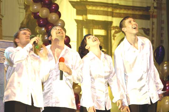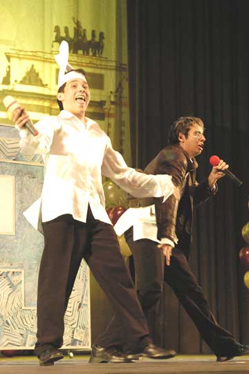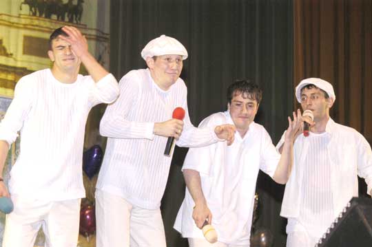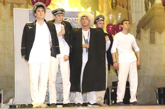 Прежде, чем конкурсанты начали свое выступление, «на разогрев» выступили две команды, прославившиеся на Школе КВН в Анапе, - «Сливки» из Адыгеи и «Отцы и дети» из Суходола Самарской области. Первые порадовали самоиронией, задав тон всей игре: Руки шофера пахнут бензином, Руки рабочего - маслом машинным. Руки лентяя не пахнут ничем – Спасибо за это тебе, КВН! А «Отцы и дети», несмотря на то, что главными действующими лицами в этот вечер были не они, вызвали в зале настоящее умиление, и даже в конце игры, после объявления итогов, жюри не могло не сказать несколько слов об этой уникальной команде. Дело в том, что «Отцам и детям» уже десять лет, нынешнее поколение участников – пятое. В их составе есть и совсем маленькие участники. Шутки в их исполнении воспринимаются совершенно особо: «Что это у тебя – лыжи? – Нет, «Растишку» на ногу пролила!» «Выпал молочный зуб! – А что делать? Годы берут свое!». Игры Всероссийской Юниор-Лиги можно считать профессиональным КВН. Здесь такие же конкурсы, как на «взрослой» игре, такое же требовательное жюри. Если сравнивать Юниор-Лигу со школьной, из которой вырастают все юные КВНщики, то можно заметить гораздо более спектр интересов – более взрослый. Темы школьного КВН вертятся вокруг уроков, рекламы и компьютерных игр, и потому, что уж тут скрывать, школьный КВН интересен больше всего самим школьникам – взрослым его смотреть скучновато. Совсем другое дело - команды Юниор-Лиги. Они мыслят масштабно: «Американские ученые ищут ответ на вопрос, куда уходит детство. А российские ученые стесняются им это место показать!» «Снесла курочка яичко. Мышка бежала, хвостиком махнула, яичко упало и разбилось. Плачет дед, плачет баба. А курочка кудахчет: «Не плачьте, я снесу вам гостиницу «Москва»! Но мы забегаем вперед. Вернемся к приветствию. Каждая команда представилась в своем вкусе. Пожалуй, одна сентенция, выданная в этом конкурсе, пойдет в народ и поможет прогуливать уроки еще не одной школьной команде: «КВН – это не хобби, а алиби». Как заметили те же умудренные опытом «Отцы и дети», «каждый открытый урок можно сделать закрытым». Однако пришлось прервать веселье и вернуться к серьезности: жюри уже выставляло оценки за первый конкурс и просило подготовиться ко второму – к конкурсу «Разминка», самой сложной части игры. По правилам, на придумывание ответов на каверзные вопросы своих же соперников участникам дается всего тридцать секунд. Конкурс начался с провокации. «Как известно, на разминке команды используют старые анекдоты и интернетовские шутки. У вас есть 30 секунд, чтобы сознаться в этом». Но команды не ударили в грязь лицом: каждый придумал свой, и, разумеется, новый ответ. Конкурс СТЭМ порадовал разнообразием тем: от реалистически-школьных до народно-сказочных и от музыкальных до военных. «Донской вариант», приготовивший самый цельный сюжет в этом конкурсе, обыграл сразу две злободневные темы: возвращение в школьную программу урока начальной военной подготовки и переход на контрактную армию. «Так как денег на контракты не хватило, их пришлось скопировать с брачных! – объявляет ведущий. - Рядовой, берете ли вы себе в командиры сержанта, пока дембель не разлучит вас? Возьмите гранаты и обменяйтесь кольцами. Поздравляем, отныне вы – дед и салага!». И, наконец, конкурс «Домашнее задание» -- самый веселый, самый игр